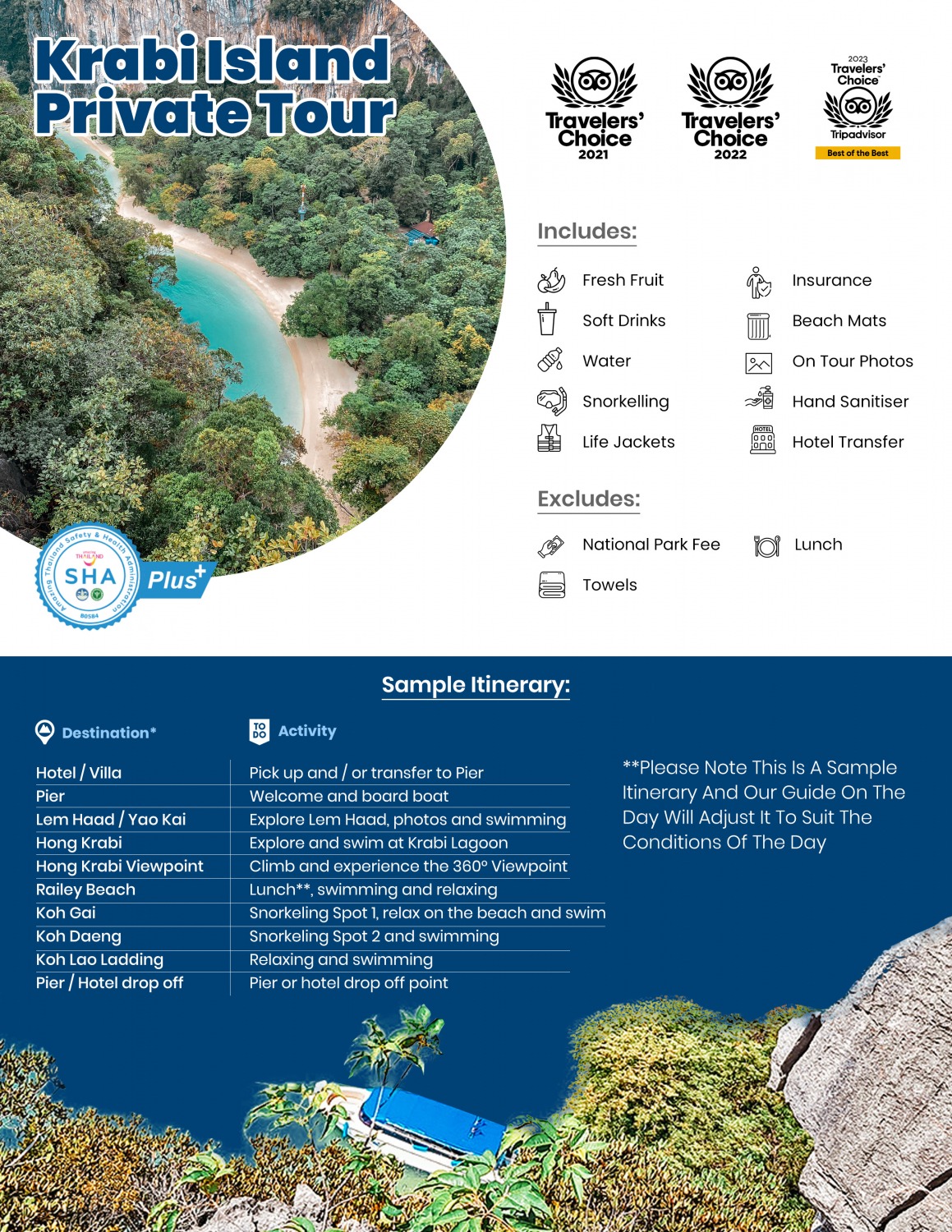 Ko Hong Krabi and the smaller Krabi province archipelagos are typically quieter than the more popular Phi Phi or Phang Nga Bay area tours. However, the sheer natural beauty you get to encounter really is something else. This area provides you with everything you could want from a day out with your friends or family – whether it be snorkelling, discovering white sandy private beaches, hiking or sightseeing – there is something to keep everyone happy.